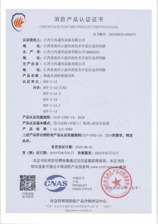 力風(fēng)通風(fēng)設(shè)備榮譽(yù)資質(zhì)
